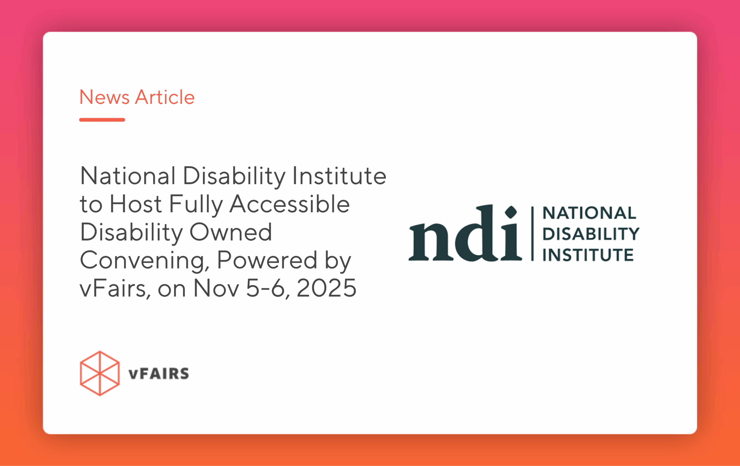 “Accessibility is at the heart of inclusive innovation, and virtual events help break down barriers that many entrepreneurs with disabilities face,” said Muhammad Younas, CEO of vFairs. “We’re proud to support NDI in creating a fully accessible space where every attendee can connect, learn, and grow without limitations. Our platform is designed to ensure that everyone has equal access to opportunity, no matter where they are.”