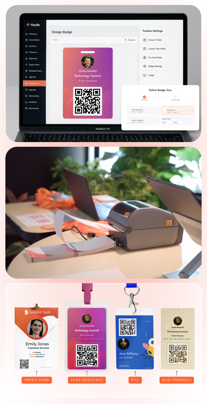 On-site check-ins and badge printing can be time-consuming and error-prone, causing delays, frustration, poor experience.