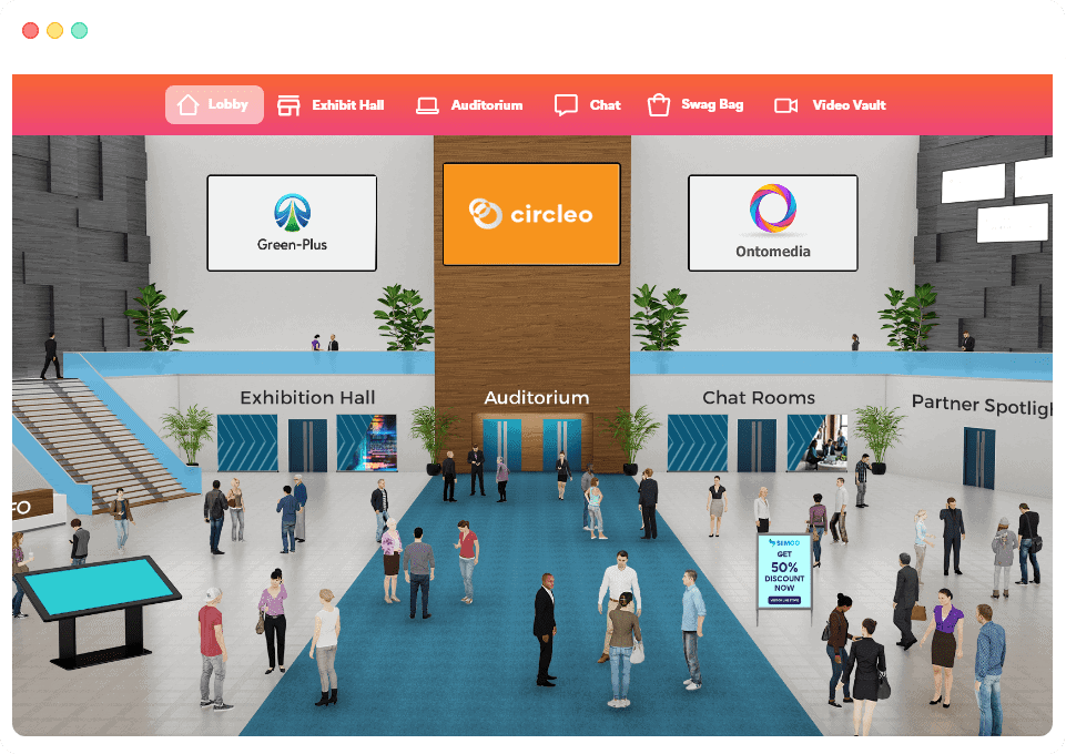 Boost event engagement with gamification features. Encourage your attendees to participate in scavenger hunts or trivia, or cover maximum virtual space through a virtual leaderboard.