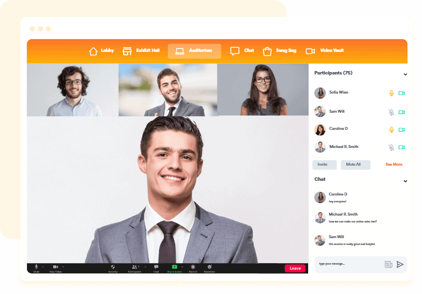 Understand your audience with real-time data on how many have logged in, where participants are spending the most time. Get insights into audience behaviour to further improve your event with live feedback.